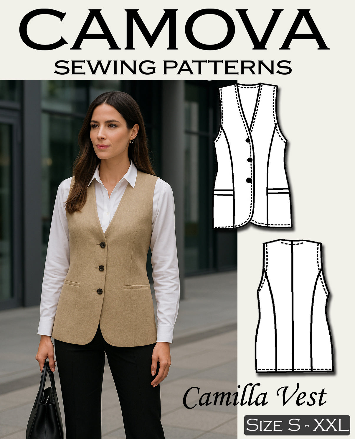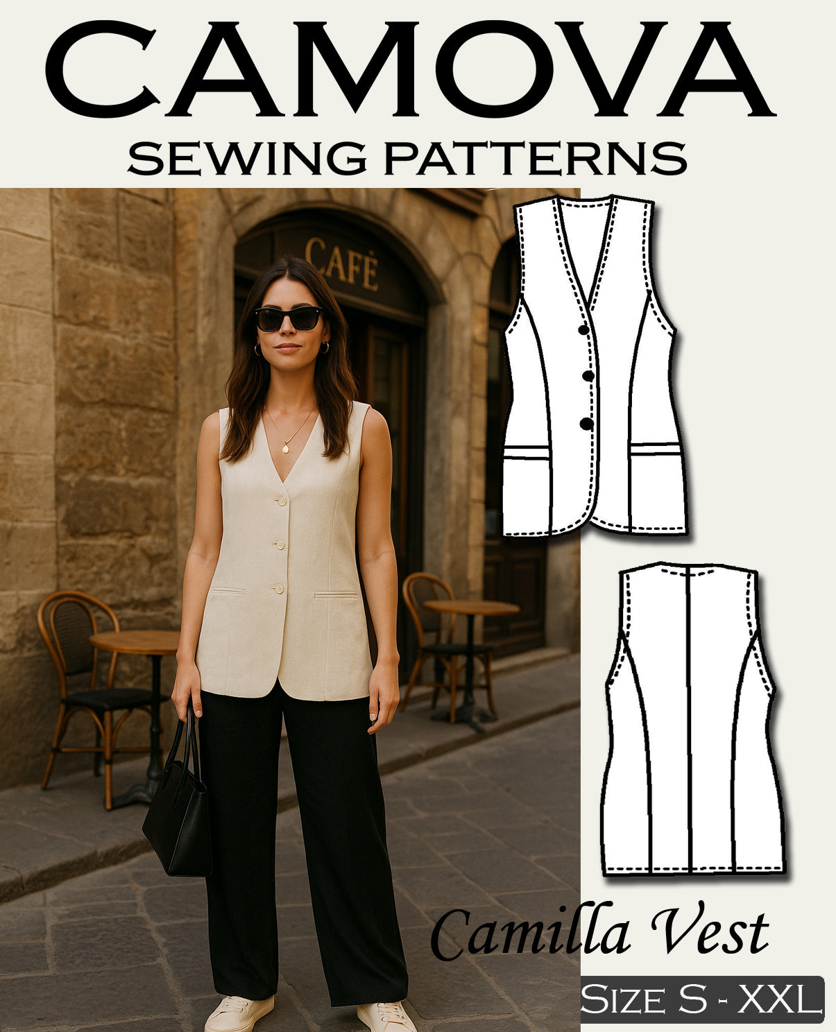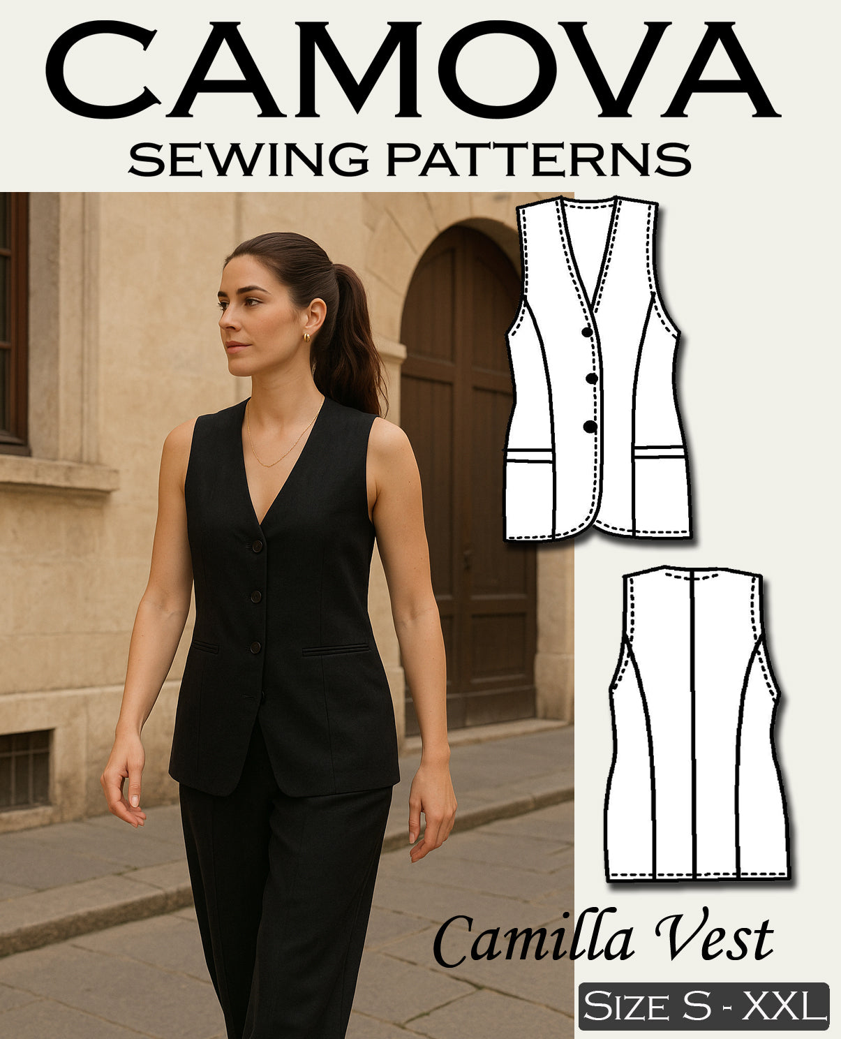 Camille – PDF Schnittmuster Damenweste (Größen S–XXL)