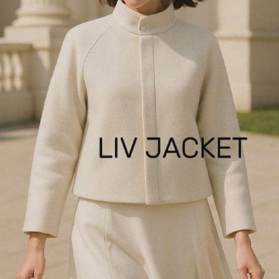 Entdecke die zeitlose Eleganz der Liv Jacket – ein minimalistisches Schnittmuster für eine moderne, kurz geschnittene Jacke mit Stehkragen und raffinierten Knopfdetails. Perfekt für einen edlen Alltagslook oder als stylisches Highlight zu besonderen Anlässen.